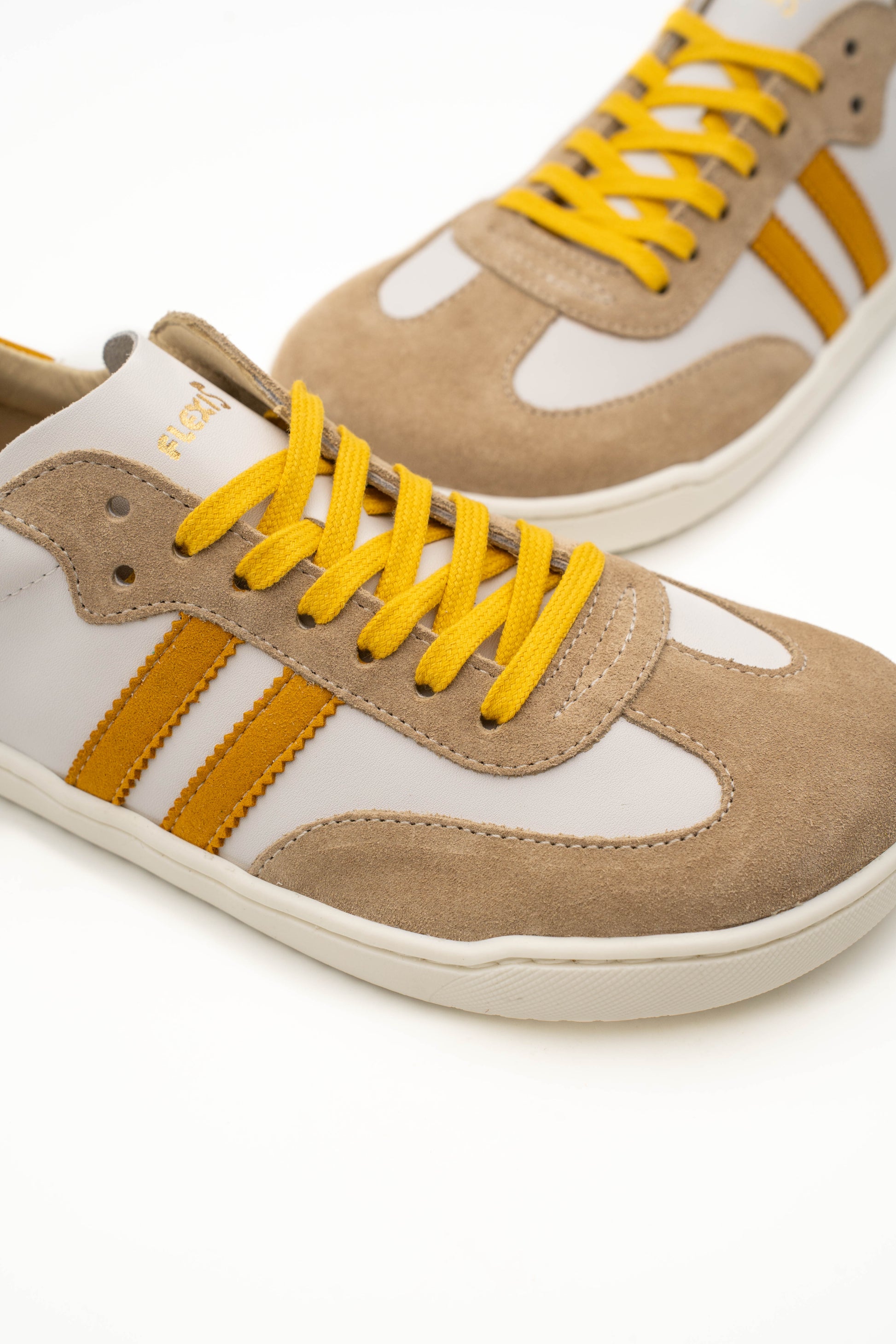 Zapatilla barefoot de corte bajo que combina libertad de movimiento y diseño urbano. Upper en piel y serraje con detalles mostaza, suela fina y flexible que favorece la pisada natural y plantilla extraíble forrada en piel para mayor higiene. Cierre con cordones para ajuste preciso. 100% Barefoot.
