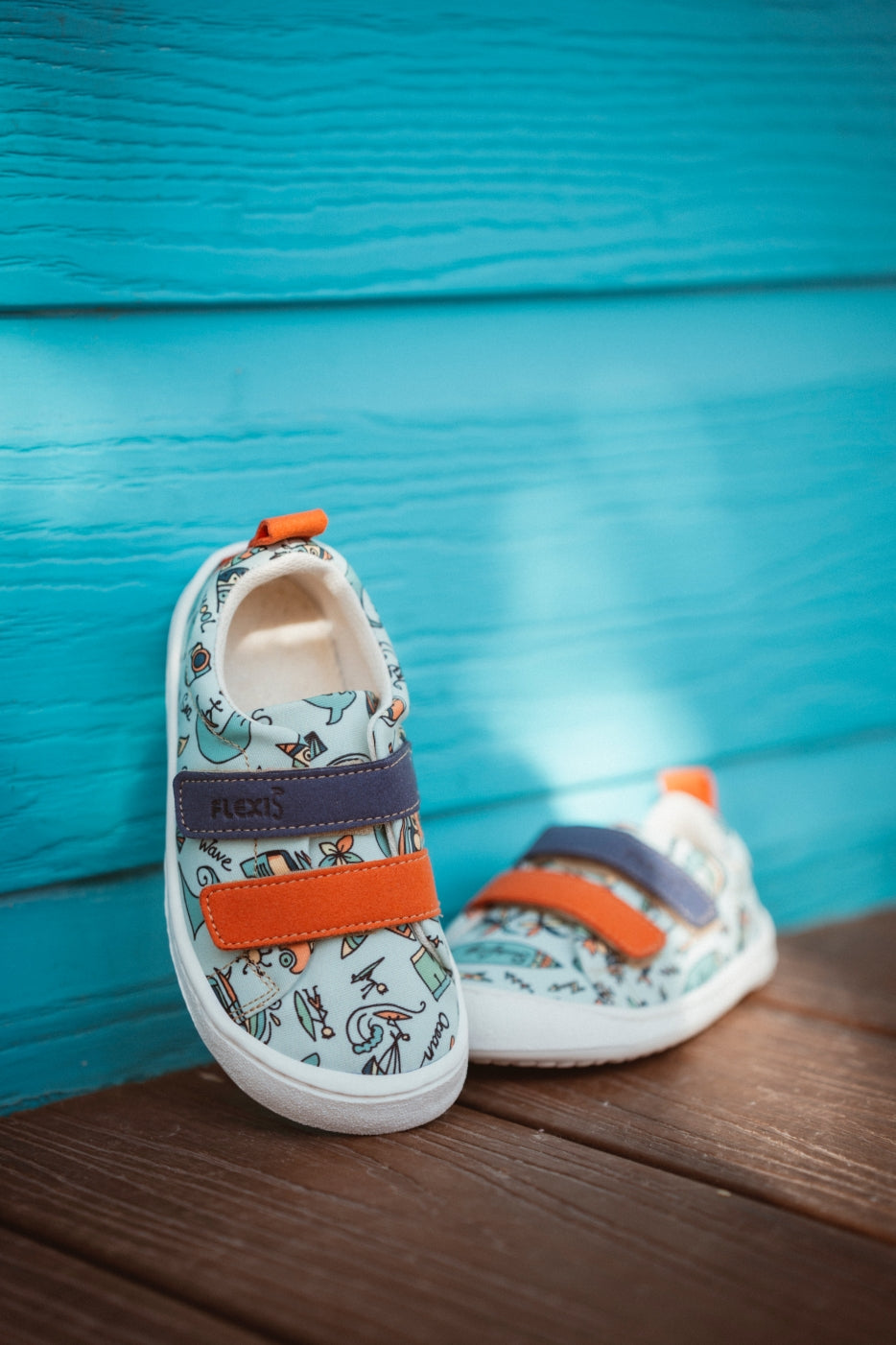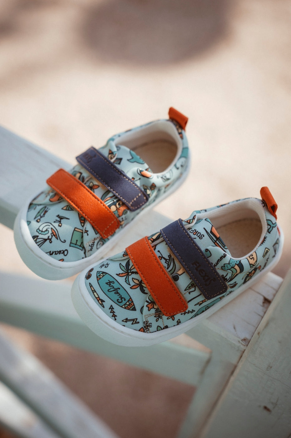 Lonas de FLexi Nens fabricadas con tejido seaqual desarrollado con plásticos reciclados del mar. Zapatilla barefoot 100% y vegana.
