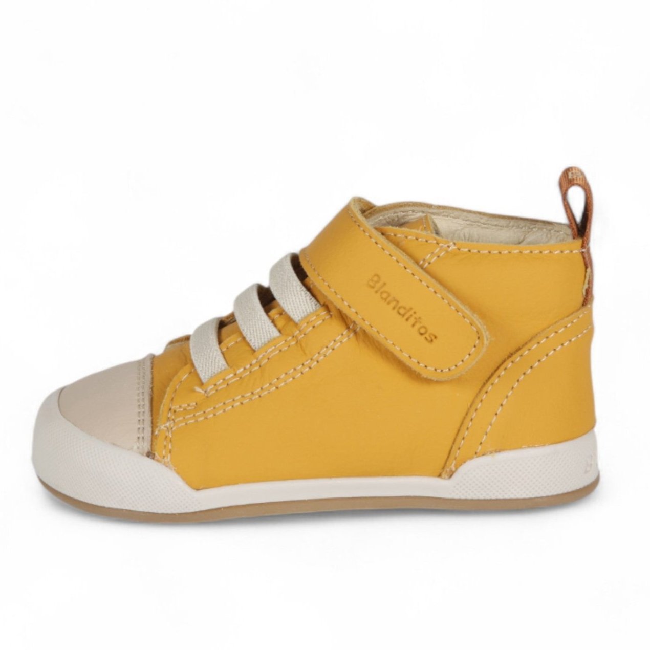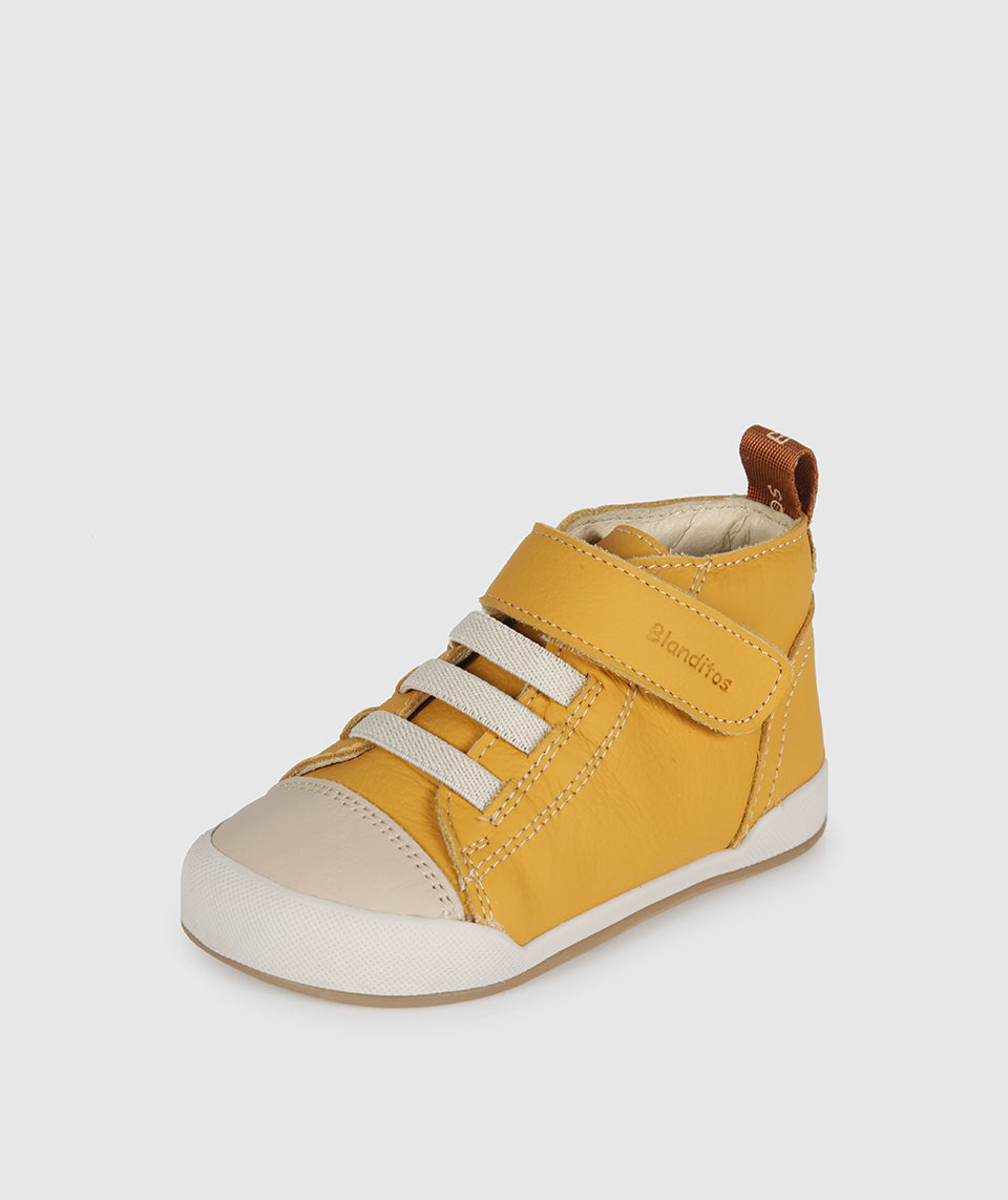 Botines de Blanditos en piel blanda, puntera anchan con suela en color miel. Muy flexibles, calzado respetuoso.