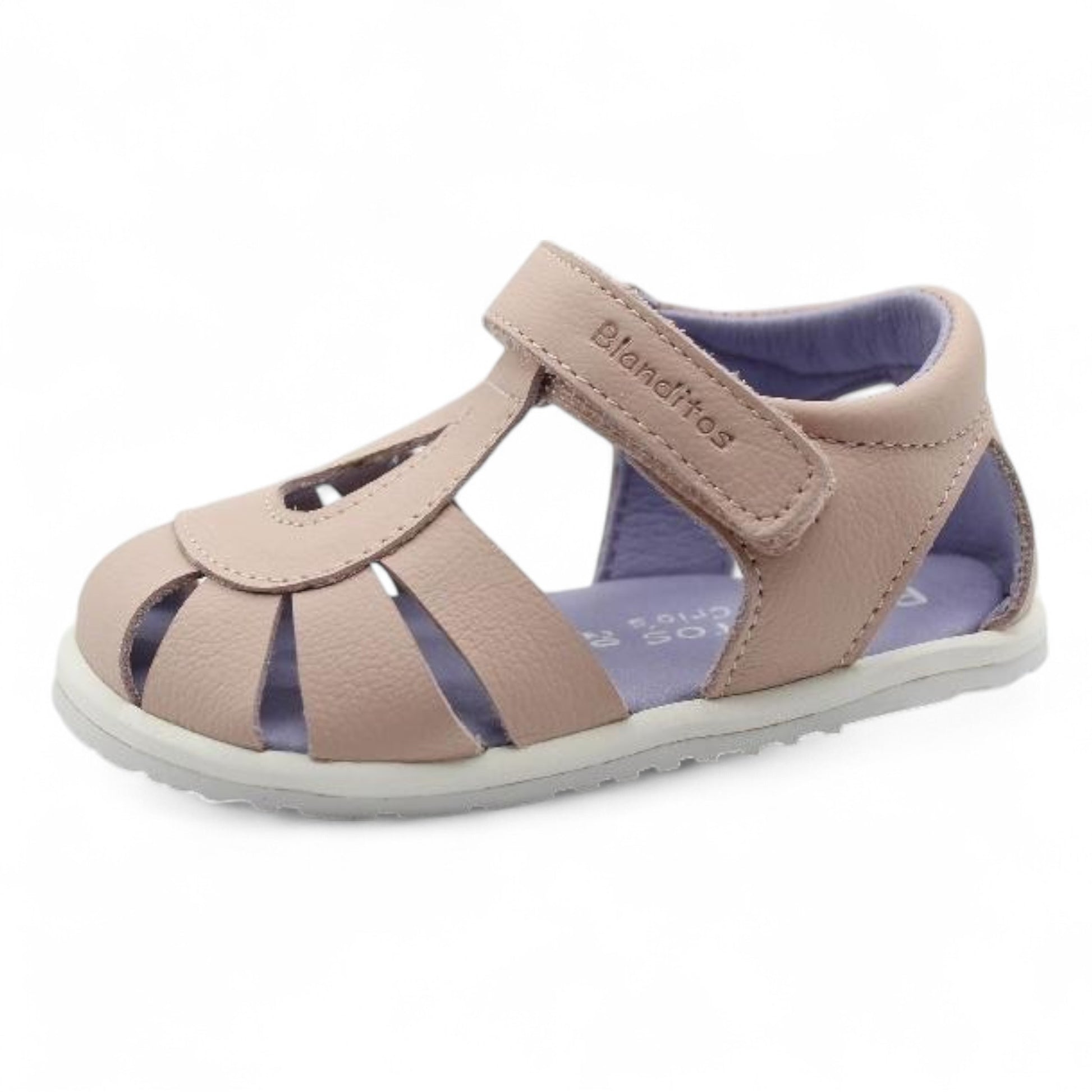 Sandalia de Blanditos fabricada en piel, cierre velcro. Suelo en piel y suela de goma flexible.