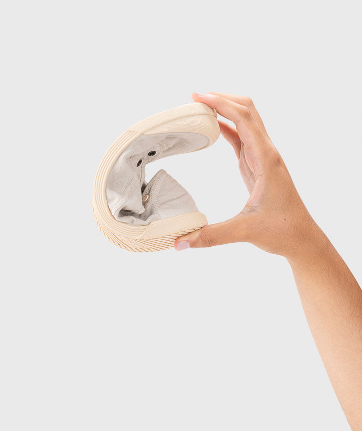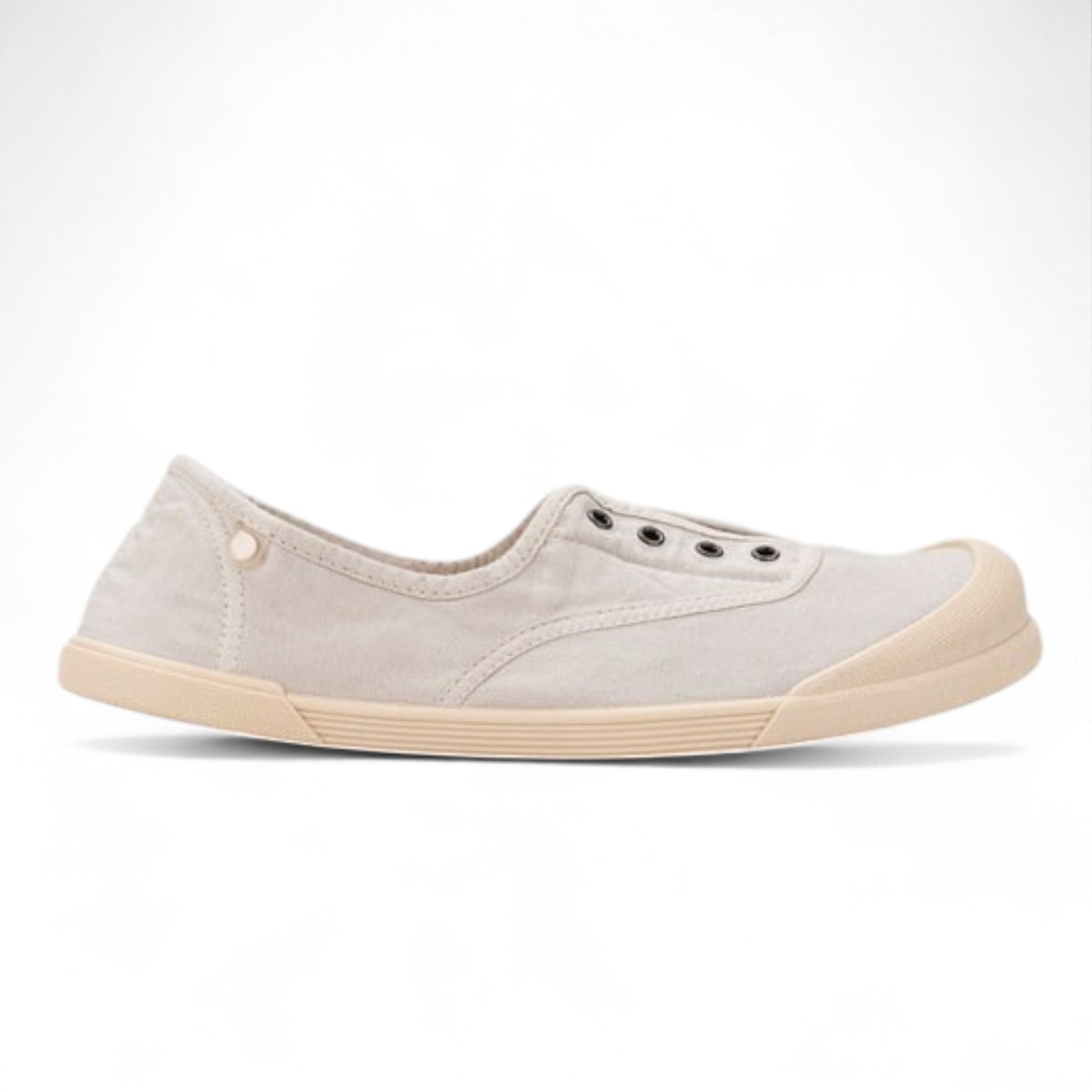 Zapatilla de lona de mujer 100% algodón, de concepto barefoot medium, cero drop, flexible, blandita y con plantilla extraíble. El tinte de nuestras lonas es irregular por su efecto lavado. Lavar en agua fría no sin antes extraer la plantilla.
