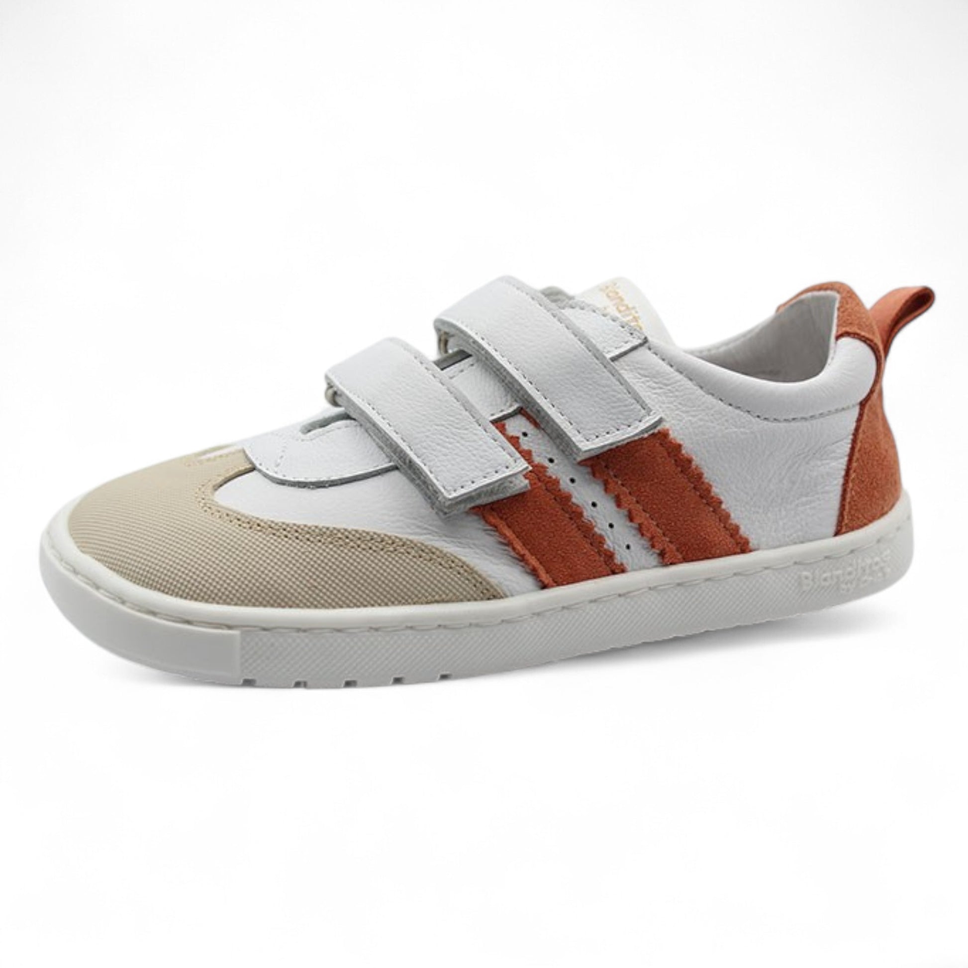 Zapatilla Deportiva de Blanditos, fabricada en piel y con el estilo samba. Suela de goma cosida, puntera protegida y doble cierre de velcro.