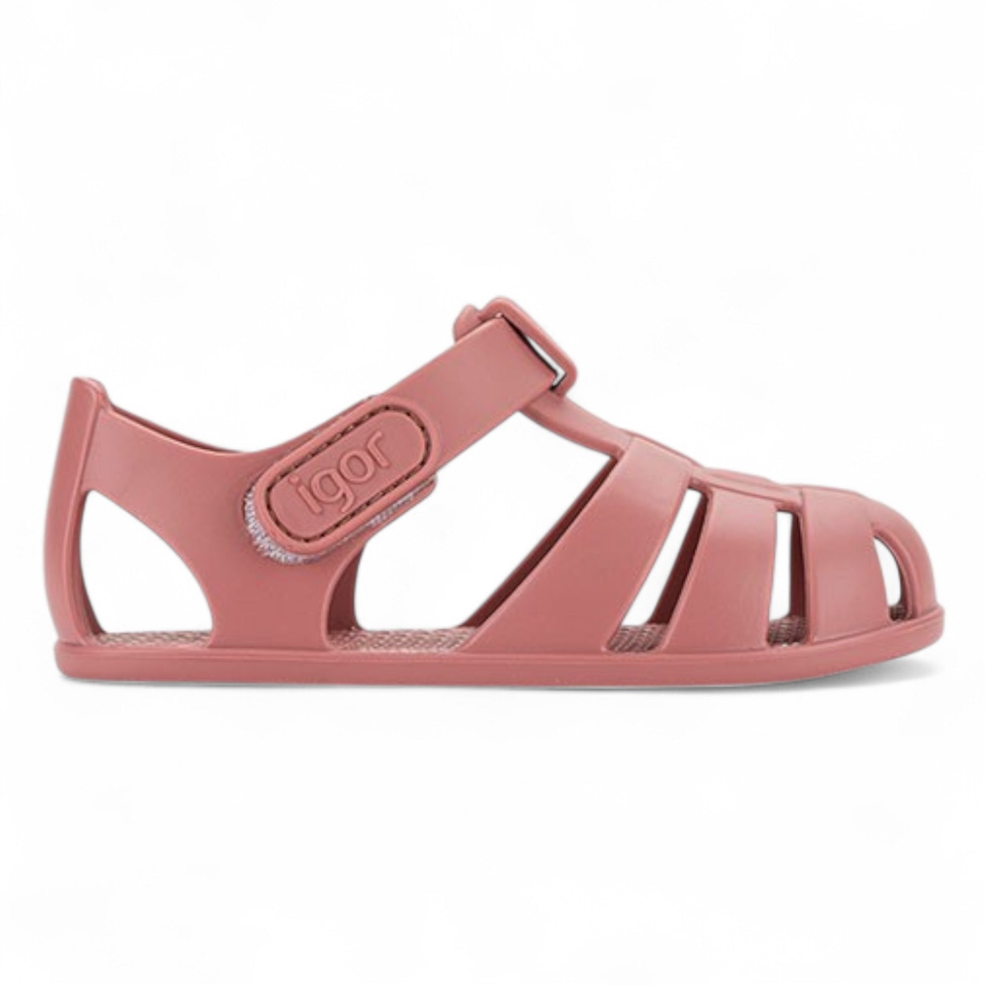 Cangrejera diseñada en concepto barefoot medium, cero drop, flexible y blandita, fabricada con al menos un 50% de pvc reciclado libre de ftalatos y cierre adherente.